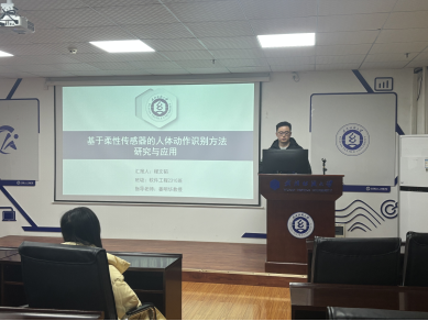 程文韬同学分享的主题为“Research and Applications of Human Action Recognition Based on Flexible Sensors”。他们探讨了柔性传感器与智能算法在动作感知与理解中的协同应用。首先设计并制备了一种水凝胶基柔性传感器,在微小应变感知、循环稳定性和柔性方面表现出优异性能,为高精度动作信号采集提供了可靠硬件基础。在此基础上,他们提出了一种时空特征融合的注意力算法,通过多层卷积网络与双向长短期记忆网络协同建模,实现了对复杂人体动作的高精度识别。实验结果表明,该方法在公开数据集上取得了显著优于对比算法的识别性能。进一步构建了基于柔性传感器的人体动作数字孪生系统,为可穿戴健康监测和人机交互应用提供了完整解决方案。
