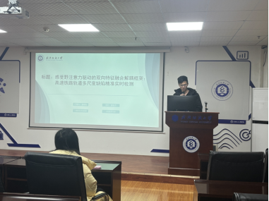 潘寒阳同学分享的主题为“Receptive Field Attention-Driven Bidirectional Feature Fusion Decoupled Framework: Accurate and Real-Time Detection of Multi-Scale Defects on High-Speed Railway Tracks”。当前,高铁轨道表面缺陷的精准实时检测是保障运营安全的关键,但现有方法面临双重难题:多尺度缺陷(如微小裂纹)特征表征不足,沙砾、锈斑等背景干扰易降低精度;且难平衡高精度与实时性,适配边缘部署受限。为此,他们提出感受野注意力驱动的双向特征融合解耦框架,核心模块包括:1. RFAConv 模块,动态调节卷积感受野权重,聚焦微小缺陷并抑制噪声;2. BiFPN 模块,以可学习权重多轮融合多尺度特征;3. 解耦检测头,独立优化分类与回归分支,结合 CIoU 损失强化定位与鲁棒性。自建轨道缺陷数据集实验显示,该框架 mAP50 达 94.0%,较基准提升 4.7 个百分点,精度 0.940、召回率 0.865,推理速度超 62FPS,兼顾性能与实时性。消融试验验证各模块协同增益显著。该成果为高铁轨道在线检测提供高效技术支撑,也为后续相关技术在轨道交通检测的应用奠基。