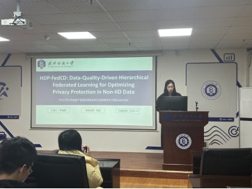 尹春晓同学分享的主题为“HDP-FedCD: Data-quality-driven hierarchical federated learning for optimizing privacy protection in non-IID data”。随着物联网设备的普及,联邦学习已成为在分散的边缘数据上进行协作机器学习的关键范式。然而,联邦学习仍然容易受到推断攻击的威胁,尤其在数据质量和分布差异较大的场景下,带来了显著的隐私隐患。现有的隐私保护方法往往忽视了这种异构性,导致在隐私与性能之间难以取得最优平衡。为此,她们的研究提出HDP-FedCD,该方案通过引入核心度作为数据质量的度量指标,动态调整噪声水平,从而在隐私保护与模型性能之间实现最优平衡。在图像分类任务上的实验验证表明,HDP-FedCD在模型准确性和抵抗攻击方面均优于当前最先进的方法,为隐私保护的联邦学习提供了一种创新解决方案。