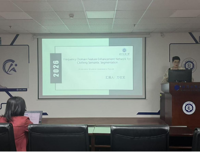 万佼龙同学分享的主题为“Frequency Domain Feature Enhancement Network for Clothing Semantic Segmentation”。现有的服装语义分割方法在复杂背景、衣物遮挡场景下分割精度不足,对细小服饰部件分割效果较差。为此,本文提出一种基于频域特征增强的网络,包含两个核心模块:频域特征增强模块将图像分解为不同频率子带,去除高频噪声与无关细节,有效突出图像中的关键信息;多尺度特征注意力模块捕捉不同尺度目标的关键信息,并通过特征聚合增强全局上下文感知能力。在 CFPD、LIP、DeepFashion2、ATR、CIHP 等多个衣物数据集,以及 Leaf、Aeroscapes 等公开分割数据集上开展的大量实验,验证了所提方法在服装语义分割任务中的有效性,并证明其在其他分割任务中具备较强的泛化能力。