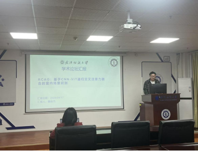 魏俊杰同学分享的主题为“RCAGFusion: Recursive cross-attention guided deep feature fusion for indoor scene recognition”。近年来,基于卷积神经网络(CNN)与视觉变换器(ViT)的特征融合在视觉识别中表现优异,但多数方法缺乏对特征交互关系的显式建模,限制了室内场景识别性能。为此,提出了递归交叉注意力(RCAG)融合框架。首先,引入输入自适应加权(IAW)机制,在融合前动态调节特征重要性;其次,设计递归参数共享(RPS)模块,增强CNN与ViT特征间的依赖建模;最后,通过注意力蒸馏模块(ADM)过滤冗余信息,提升特征判别性。在多个基准数据集上的实验表明,该方法优于现有方法,具有良好的鲁棒性与可扩展性。