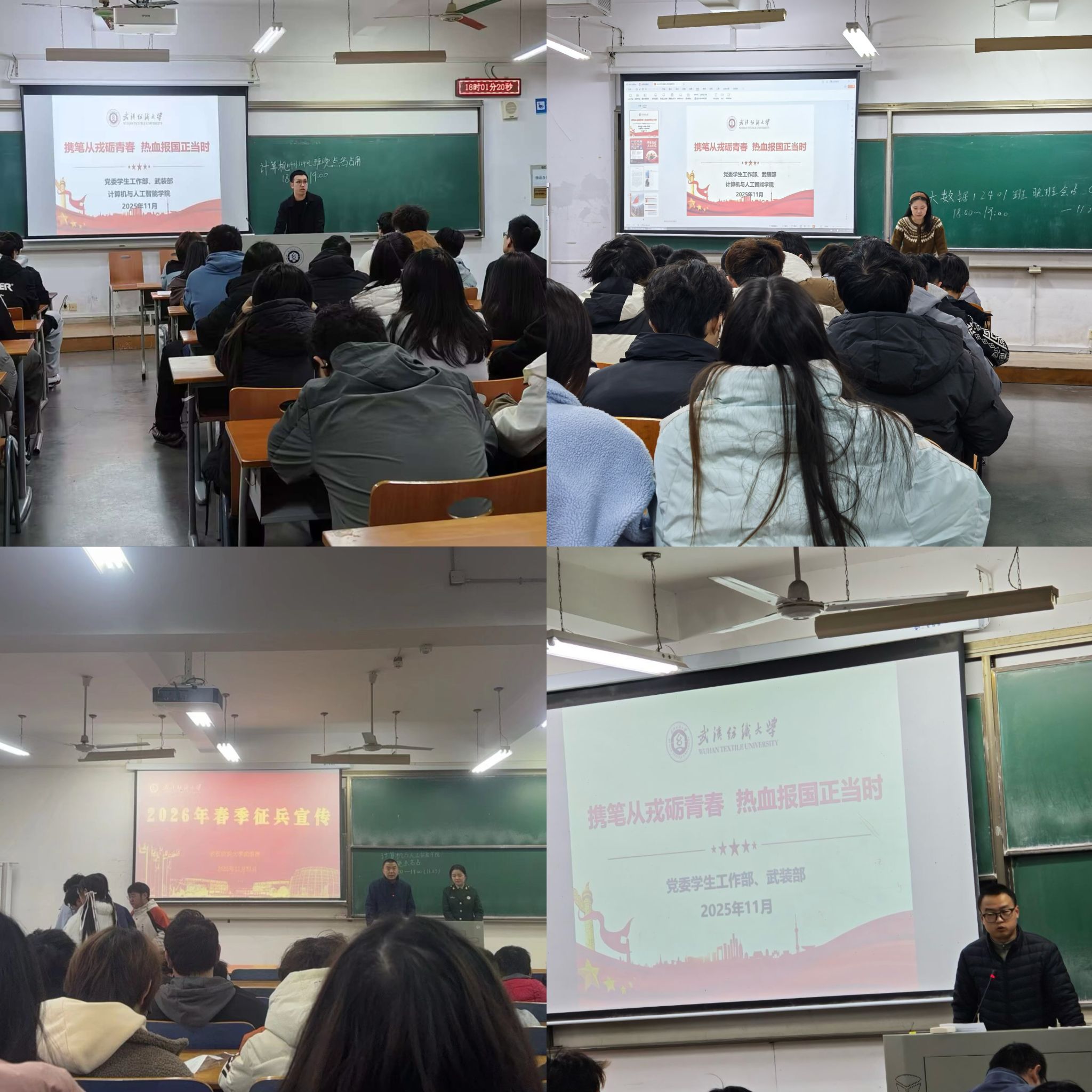 11月23日,威廉希尔,英国威廉希尔公司,WilliamHill官网开展“携笔从戎砺青春 热血报国正当时”征兵宣传主题班会暨征兵宣传“三个一”活动。本次班会特别邀请退役士兵分享军旅生活,并通过宣传视频、图片展示等形式,全方位展示军旅风貌,激发了学子参军热情。