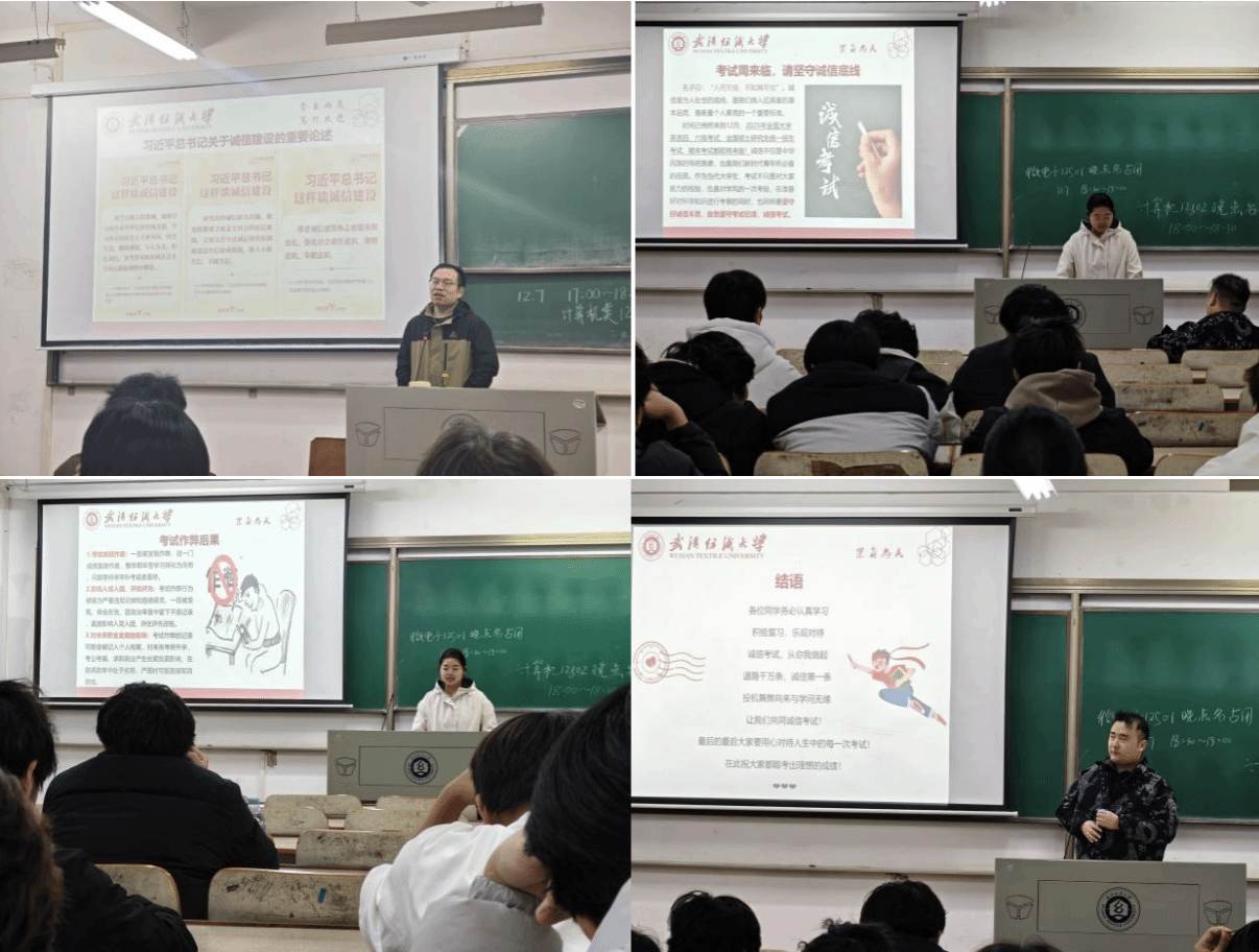 12月7日,威廉希尔,英国威廉希尔公司,WilliamHill官网以“诺守诚信考风 践行守信之德”为主题召开班会。班会紧扣习近平总书记关于诚信建设的重要论述,深入阐释诚信作为社会主义核心价值观的重要内涵,为同学们厚植诚信应考的思想根基;同时明确考试作弊的法律责任与学业处分规定。此次班会既吹来了浸润心灵的诚信春风,也敲响了杜绝舞弊的纪律警钟,引导同学们以诚信品格奔赴考场,用真实成绩书写青春答卷。