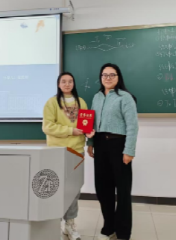 分享之余,杨凯和孟亚洁老师为分享的优秀学生标兵颁发荣誉证书。在老师寄语环节,各位老师结合自身经验,为同学们送上了恳切的建议。王兆静老师鼓励大家跳出“学生思维”,主动寻求各方资源与帮助,并强调要将所学知识通过竞赛、实习等途径付诸实践,在实践中深化理解。杨凯老师提醒同学们尽早规划未来方向,明确目标,稳步前行。孟亚洁老师则勉励大家,一旦做出选择,就应以坚定的决心和不懈的努力去实现它,为自己的决定负责。