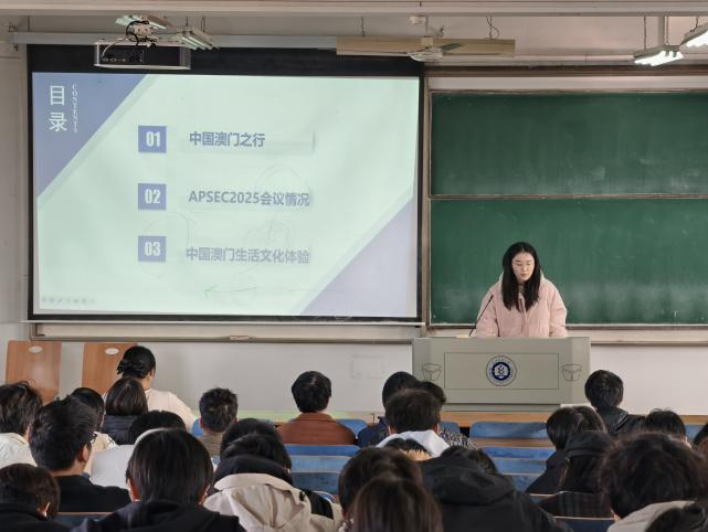 袁瑛凯以《赴澳参会,以研发声:APSEC 2025国际会议参会经验分享》为题,带来了赴澳参会的学术见闻与实用攻略。她详细拆解了港澳通行证办理、交通住宿预订等出行细节,分享了在澳门参与APSEC这一高难度国际会议的经历——面对名校学者,她从容完成全英文报告,主动交流结识了多位学术同仁。此外,她还毫无保留地分享了英语听说读写的提升技巧,强调“大胆尝试”与“持续积累”的重要性,鼓励同学们积极走出舒适区,拥抱国际学术交流的机遇。