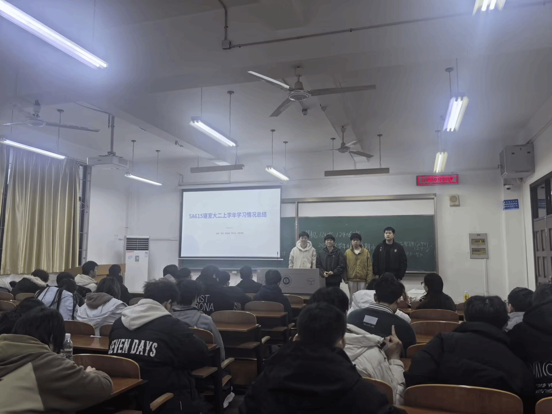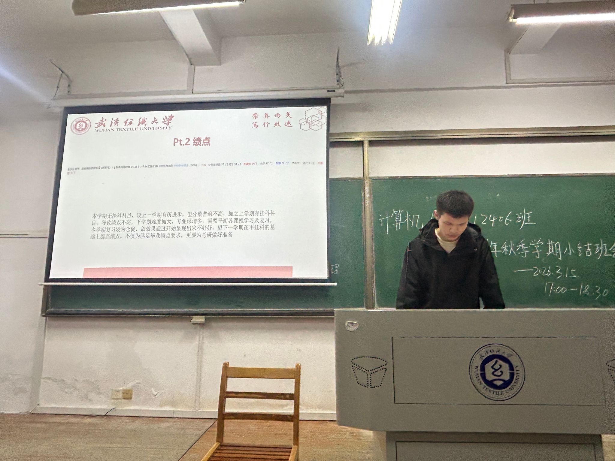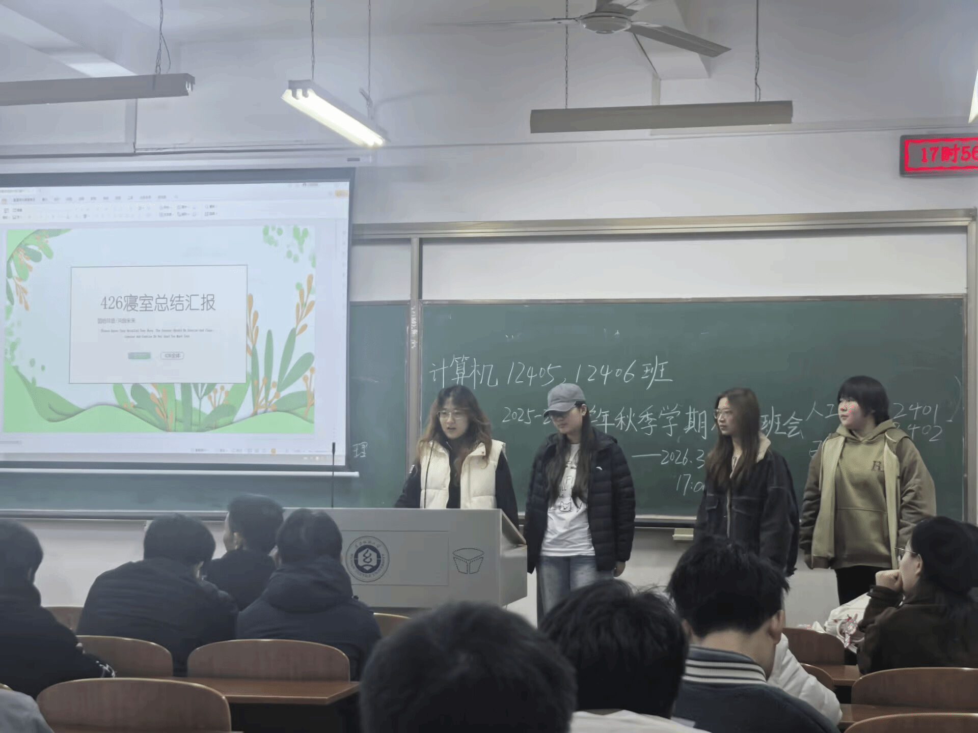 会议伊始,学习委员李炫明确本次总结会核心议程,复盘成长、剖析不足、规划提升,以务实交流推动班级整体协调发展。随后,各寝室代表依次登台,结合学期成长经历,从学习状态、生活管理、实践参与、改进方向等方面展开详细汇报。
