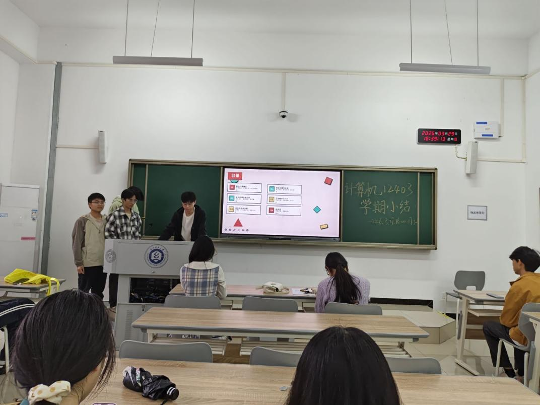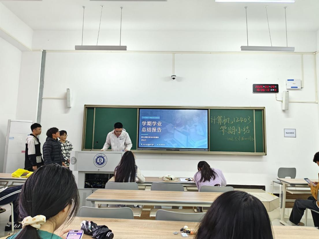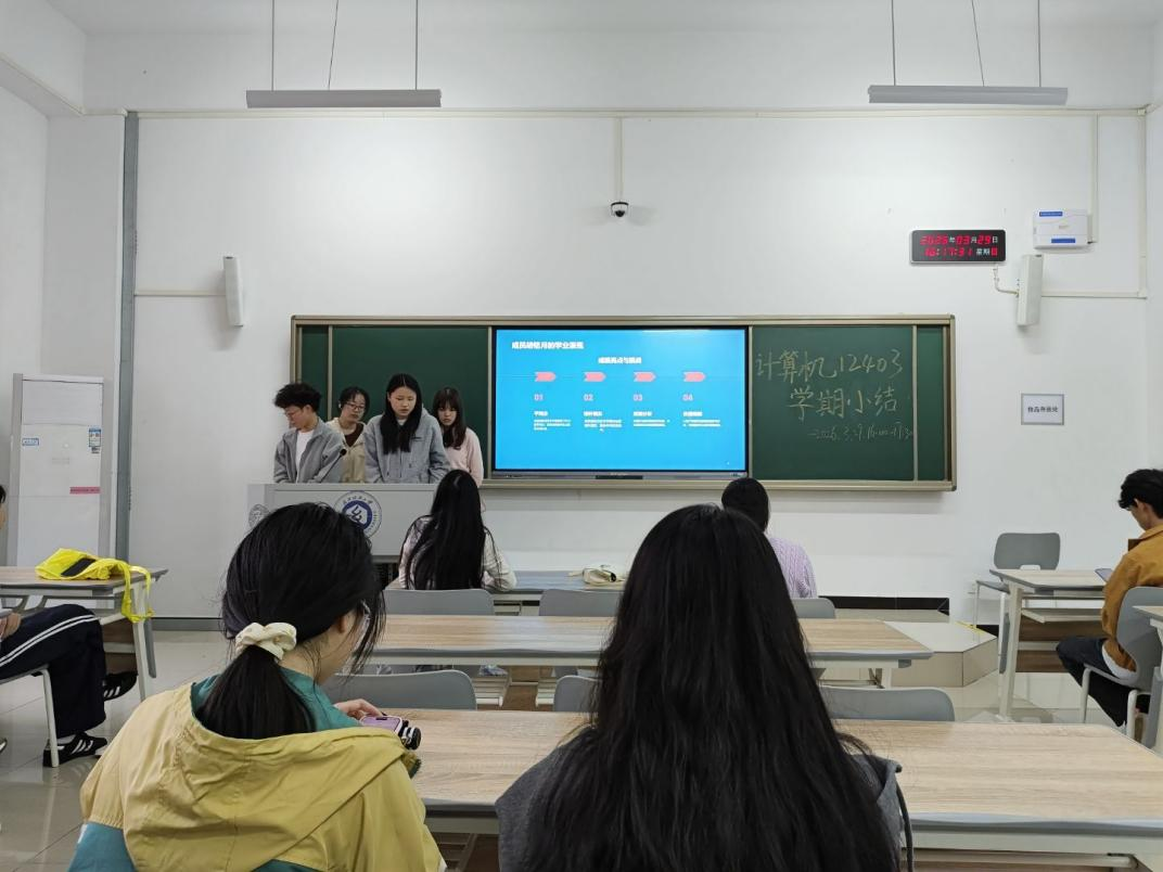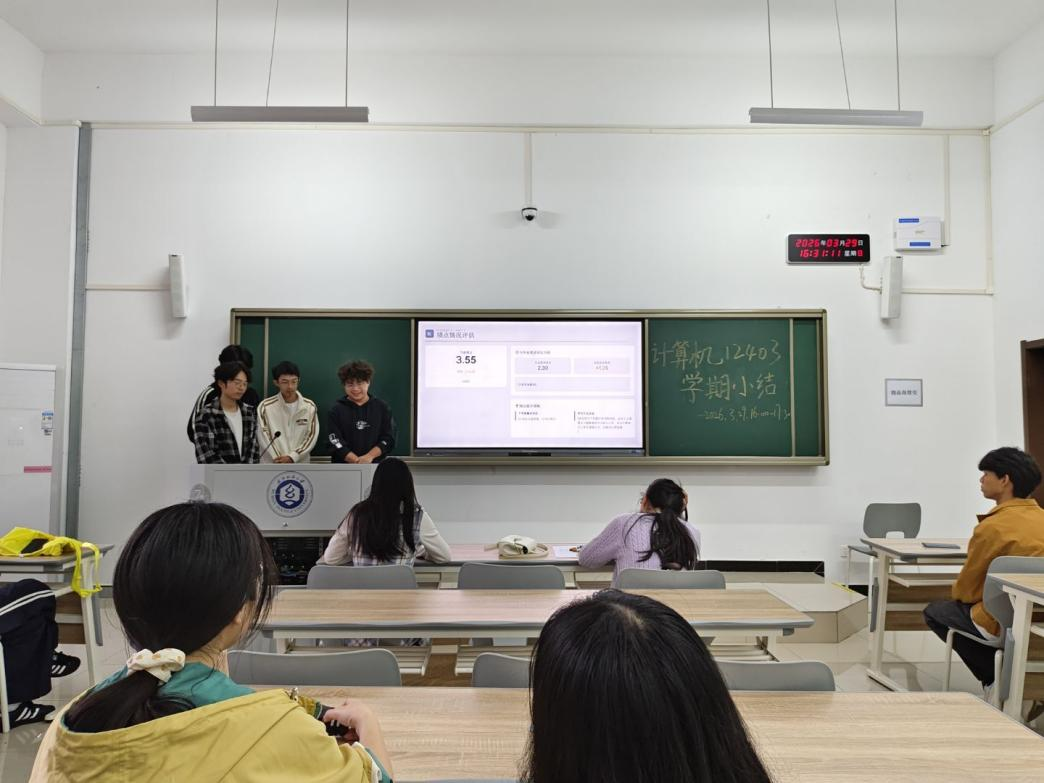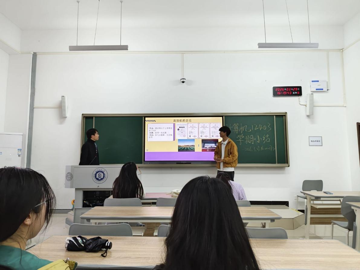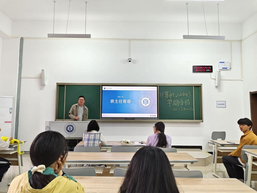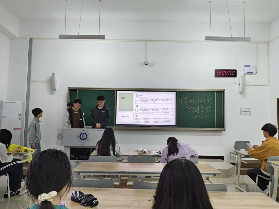 为凝聚班级力量、明确学业方向,近日,计算机12403班大二上学期小结班会顺利召开。会议由班长庞翊航主持,班主任余锋老师全程指导。庞翊航首先从班级整体发展出发,通过绩点分析、挂科复盘及优秀事迹展示,全面呈现班级风貌,并梳理出同学学习动力不足、时间管理松散等问题。