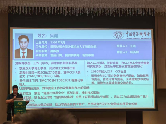 近年来,学院始终坚持“引才聚智、协同创新”学科建设思路,积极搭建高水平学术交流平台,“引进来、走出去”,邀请校外高水平专家来院指导,鼓励教师参与国内外学术交流,以开放合作的姿态推动学科发展,为学院学科持续发展注入强劲动力。吴渊老师此次当选普适计算专委会执行委员,不仅体现了其在普适计算及相关领域的学术贡献获得国内同行的认可,也反映出我院在人工智能、计算机科学与交叉应用研究方面日益提升的影响力。