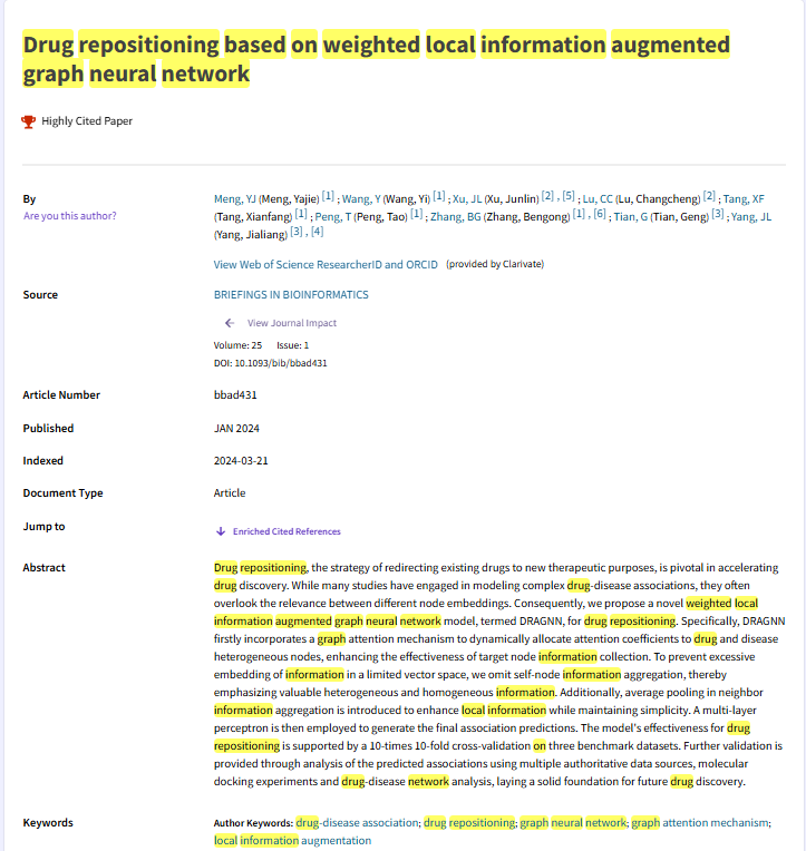 该成果发表于生物信息学顶级期刊《Briefings in Bioinformatics》,获得了包括哈佛大学医学院、宾夕法尼亚大学、北京化工大学、武汉大学等国内外顶尖高校及医学研究机构的引用,后续多项研究将其作为重要基线模型,影响力持续扩散。孟亚洁老师团队长期致力于人工智能与计算生物医学交叉研究,已主持国家自然科学基金等多项课题,在Cell Reports Methods、AAAI等顶级期刊和会议发表论文50余篇。