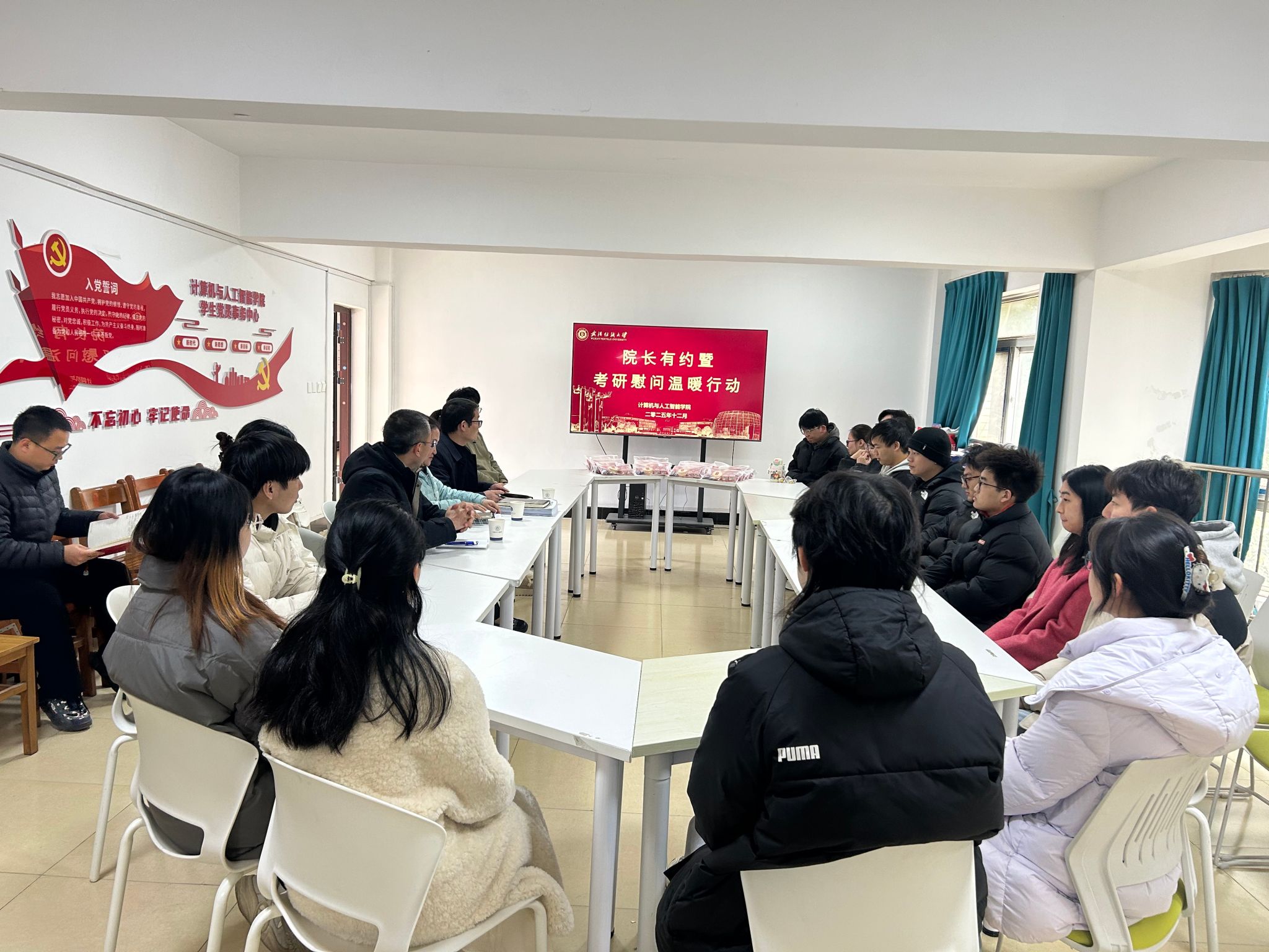 12月15日,为帮助2022级考研学子缓解备考压力、提振冲刺信心,威廉希尔,英国威廉希尔公司,WilliamHill官网在5栋一站式学生社区精心组织开展“院长有约暨考研慰问温暖行动”。学院院长胡新荣、院党委书记晏伟、院党委副书记向涛与22级考研学生代表亲切座谈交流,活动由向涛主持。