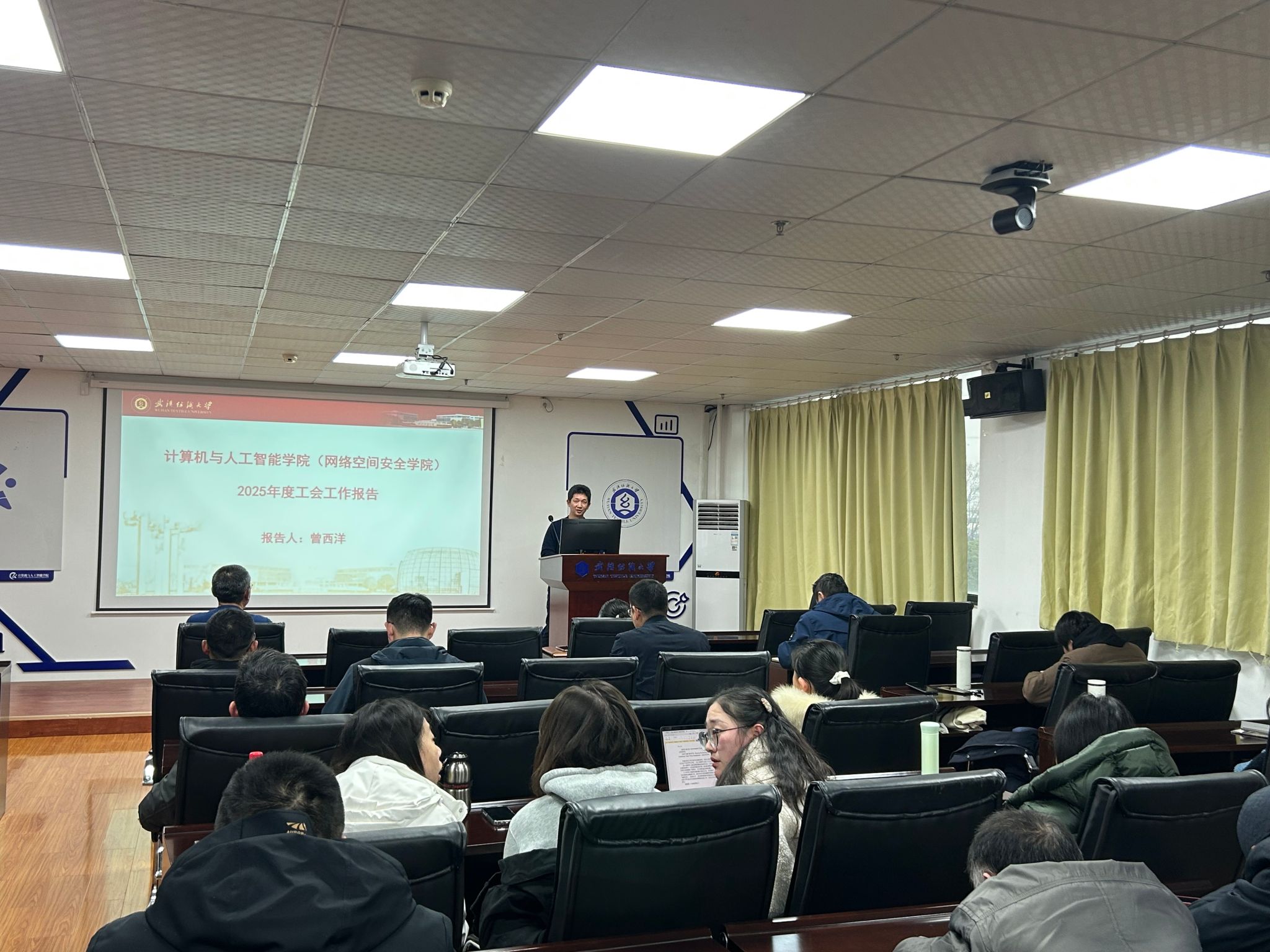 学院工会主席曾西洋代表工会作2025年度工会工作报告。梳理了过去一年工会的重点工作,从组织开展丰富多彩的文体活动、搭建教职工交流平台、完善权益保障服务等方面,全面呈现了工会为营造和谐温馨的学院氛围、增强教职工归属感与幸福感所做的具体工作。