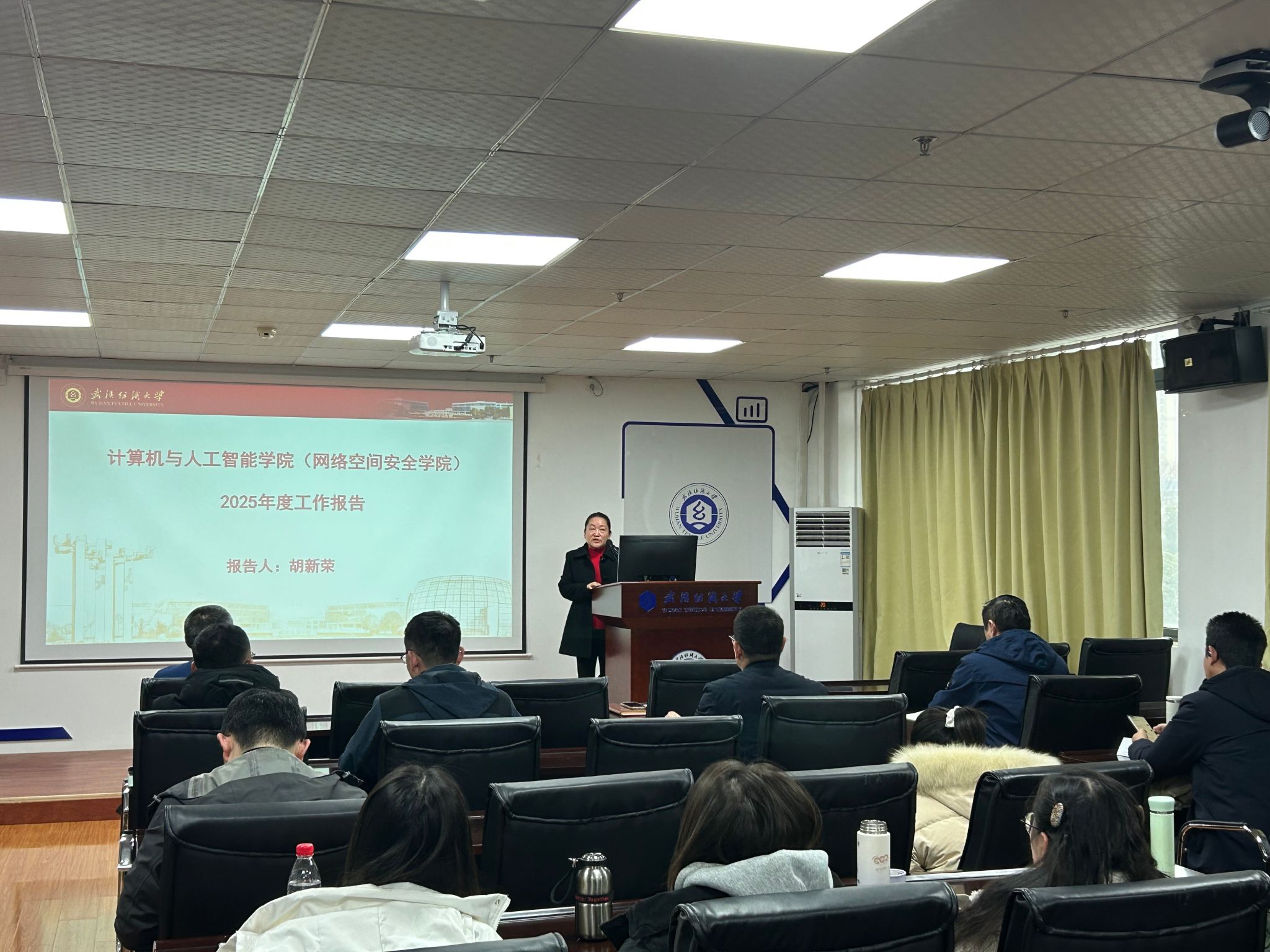 会上,院长胡新荣代表学院作威廉希尔,英国威廉希尔公司,WilliamHill官网(网络空间安全学院)2025年度工作报告及学院“十四五”总结。报告全面回顾了2025年学院在学科建设、教育教学、科学研究、人才培养等方面取得的优异成绩,同时客观剖析了发展过程中存在的不足。胡新荣通过对比学院在“十三五”与“十四五”期间的发展数据与核心成果,清晰展现了学院在学科实力、师资队伍、人才培养质量等方面的跨越式进步。她勉励全体教职工要将个人职业发展融入学院发展大局,把青春热血奉献给祖国的教育事业,以更饱满的热情和更务实的作风,为学院在“十五五”期间实现更高质量发展、铸就新的辉煌贡献力量。