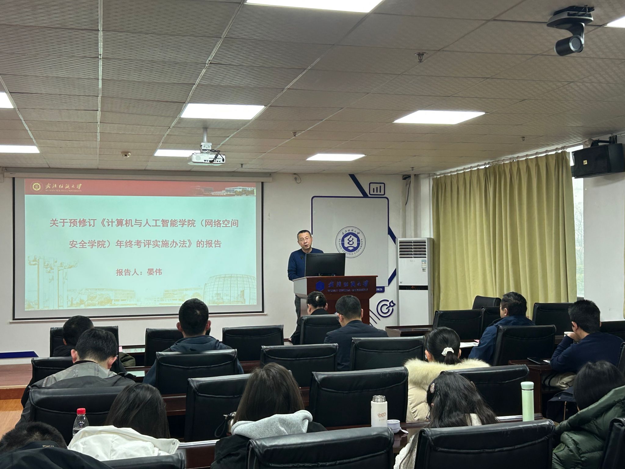 院党委书记晏伟作关于预修订《威廉希尔,英国威廉希尔公司,WilliamHill官网(网络空间安全学院)年终考评实施办法》的报告。他详细解释了修订考核办法的背景与核心思路,强调年终考核的核心目的是为了进一步优化学院发展生态,让“学生成长、教师发展、学科融合、社会认可”的发展理念深入人心。通过科学合理的考核导向,充分激发教职工的工作积极性与创新活力,推动学科交叉融合走深走实,全面提升学院的核心竞争力与社会影响力。