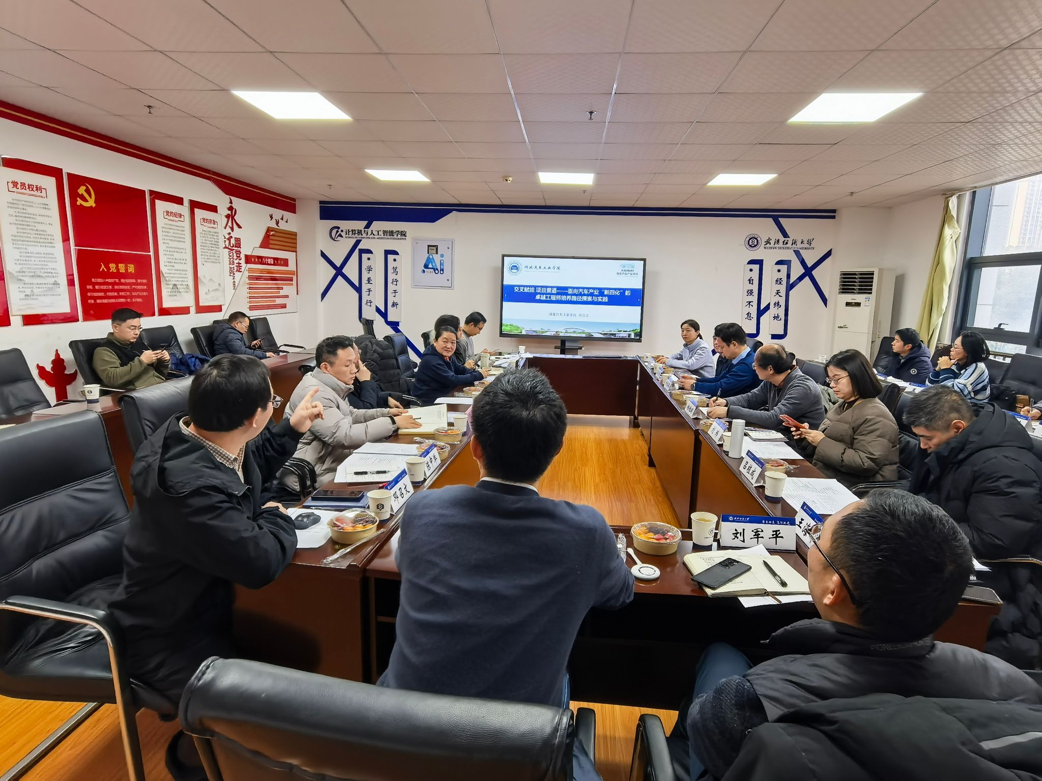 论坛报告环节,来自武汉科技大学的朱子奇副院长分享了“以学生为中心、以产出为导向”的计算机类人才培养探索与实践经验;湖北第二师范学院的王海军副院长结合自身经历,交流了学科竞赛指导的宝贵心得;湖北汽车工业学院的邓召文副院长则聚焦汽车产业 “新四化” 趋势,阐述了交叉赋能项目贯通下的卓越工程师培养路径。三场报告干货满满,开阔了计算机类本科生人才培养的思路,分享了宝贵的经验。
