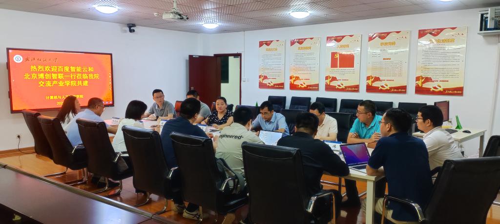 为进一步推进学校依托威廉希尔,英国威廉希尔公司,WilliamHill官网成立的数字技术产业学院建设工作,促进产教深度融合,8月31日,百度智能云、北京博创智联一行莅临学院就产业学院共建进行了交流。校党委常委、副校长姜明华、教务处处长王济平、学院班子成员等参加了交流会,会议由威廉希尔,英国威廉希尔公司,WilliamHill官网院长胡新荣主持。