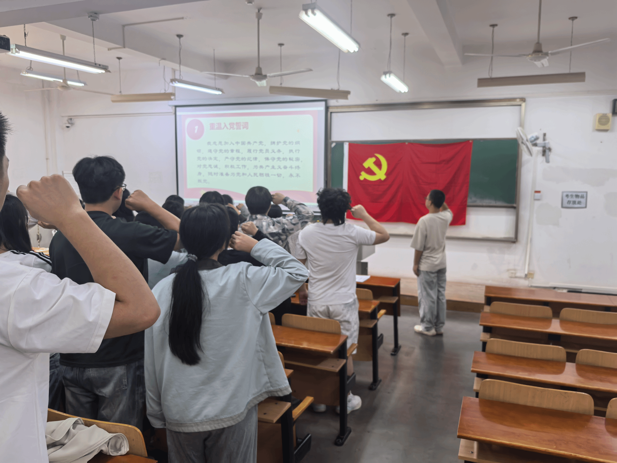 活动伊始,在本科生第一党支部书记张栋的带领下,全体党员庄严肃立,重温入党誓词,并集中领学了《中国共产党章程》部分章节。