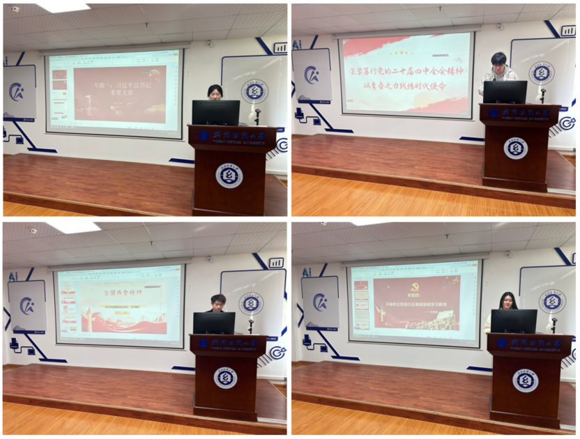 在三月份主题党日活动中,张娜等四位同志带领党员集中学习习近平总书记重要文章,传达学习全国两会精神和党的二十届四中全会精神,并围绕树立和践行正确政绩观学习教育开展专题学习与交流。组织生活会环节有序推进。各研究生党支部书记分别围绕支部年度工作情况进行述职汇报,随后学生党员代表依次进行个人自评与相互评议。最后,党建秘书余梦帆对本次组织生活会作总结,充分肯定会议成效并对后续支部建设提出具体要求。