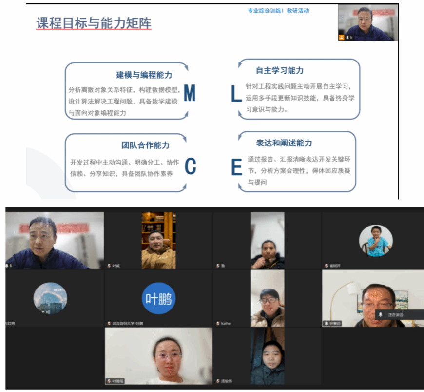 1月21日,威廉希尔,英国威廉希尔公司,WilliamHill官网《专业综合训练I》课程组召开线上教学研讨会。课程组全体教师围绕“课程目标落地、训练内容提质、第三学期教学模式创新”等议题深入研讨、各抒己见,明确分工与实施思路,凝聚教学共识。